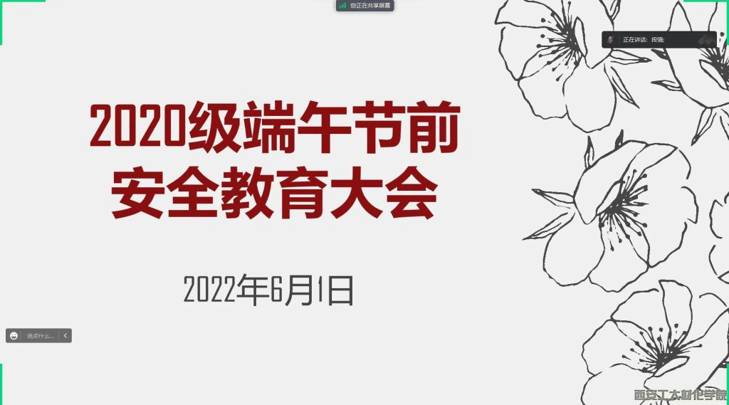 2022年6月1日下午,材料与化工学院2020级通过腾讯会议召开了假期安全教育大会,会议由2020级辅导员段强主持。2020级全体学生参加了本次会议。