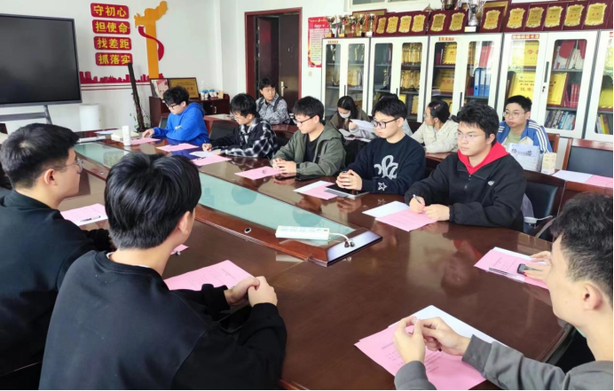 材料与化工学院学生第一党支部于10月19日下午在工三-410组织召开理论学习会议。会议学习《习近平对宣传思想文化工作做出指示》文件精神、《习近平新时代中国特色社会主义思想专题摘编》中的《完善科技创新体系》内容。会议由党支部书记刘强珺主持,支部全体学生党员参会。