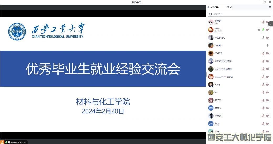 为充分发挥优秀毕业生就业典型的示范引领作用,激励引导广大研究生树立正确的就业观,掌握求职技巧,全面推动实现研究生充分就业和更高质量就业,2024年2月20日上午,材料与化工学院研究生召开线上“优秀毕业生就业经验分享会”。此次分享会邀请学院2023届优秀博士毕业生董雄博作为代表分享就业经验。研究生辅导员胡娜、全体硕士研究生参加会议。