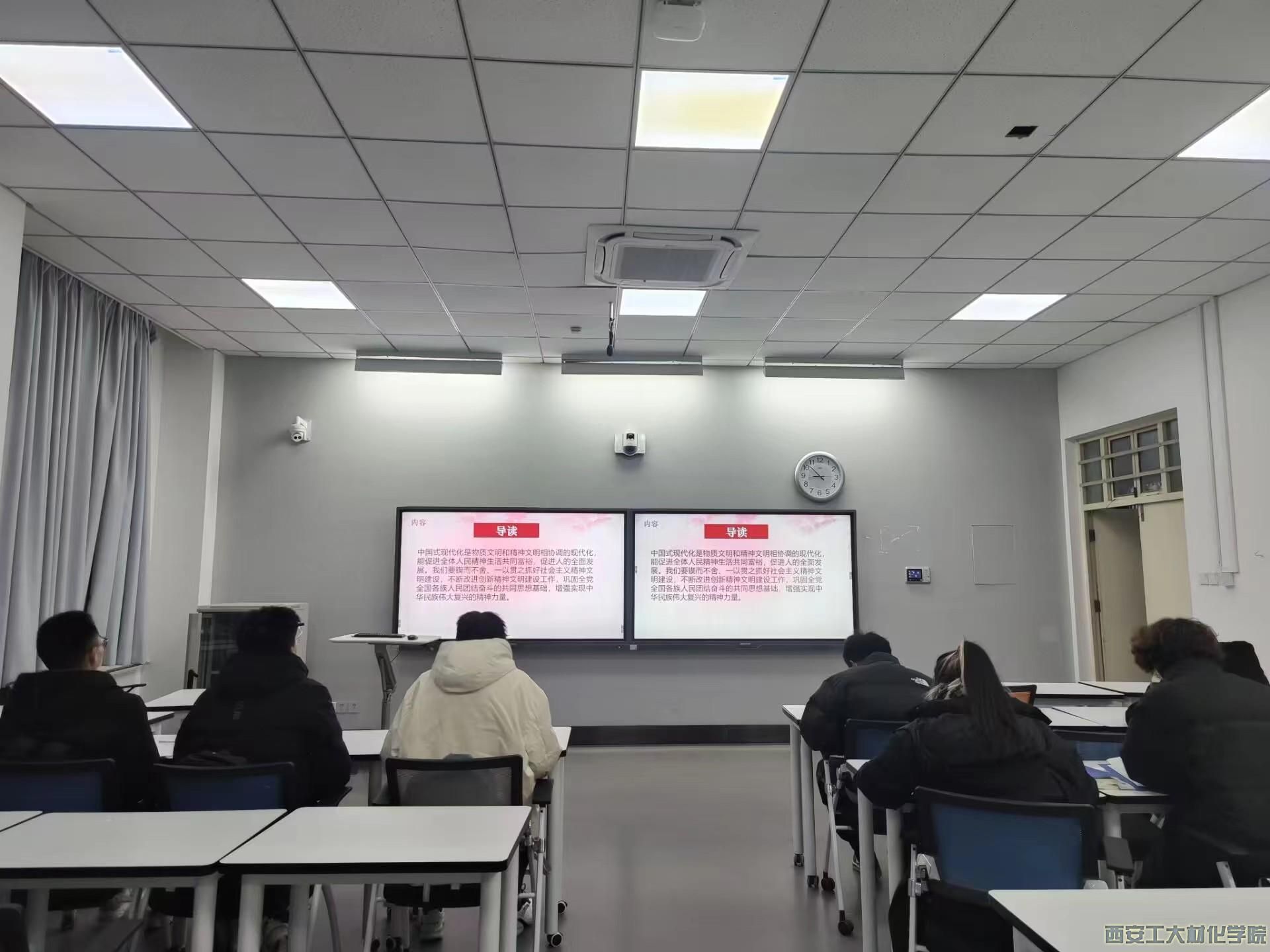 会议伊始,学生干部焦钰婷以中国式现代化为引,提出中国式现代化是物质文明和精神文明相协调的现代化,使同学们对其有了更深的了解;之后,通过“以‘两个文明’相协调促进全体人民精神生活共同富裕”和“以‘两个文明’相协调促进人的全面发展”两大主题的阐述,为新时代中国青年推动物质文明和精神文明相协调指明了方向。会上,同学们交流了学习心得和感悟。