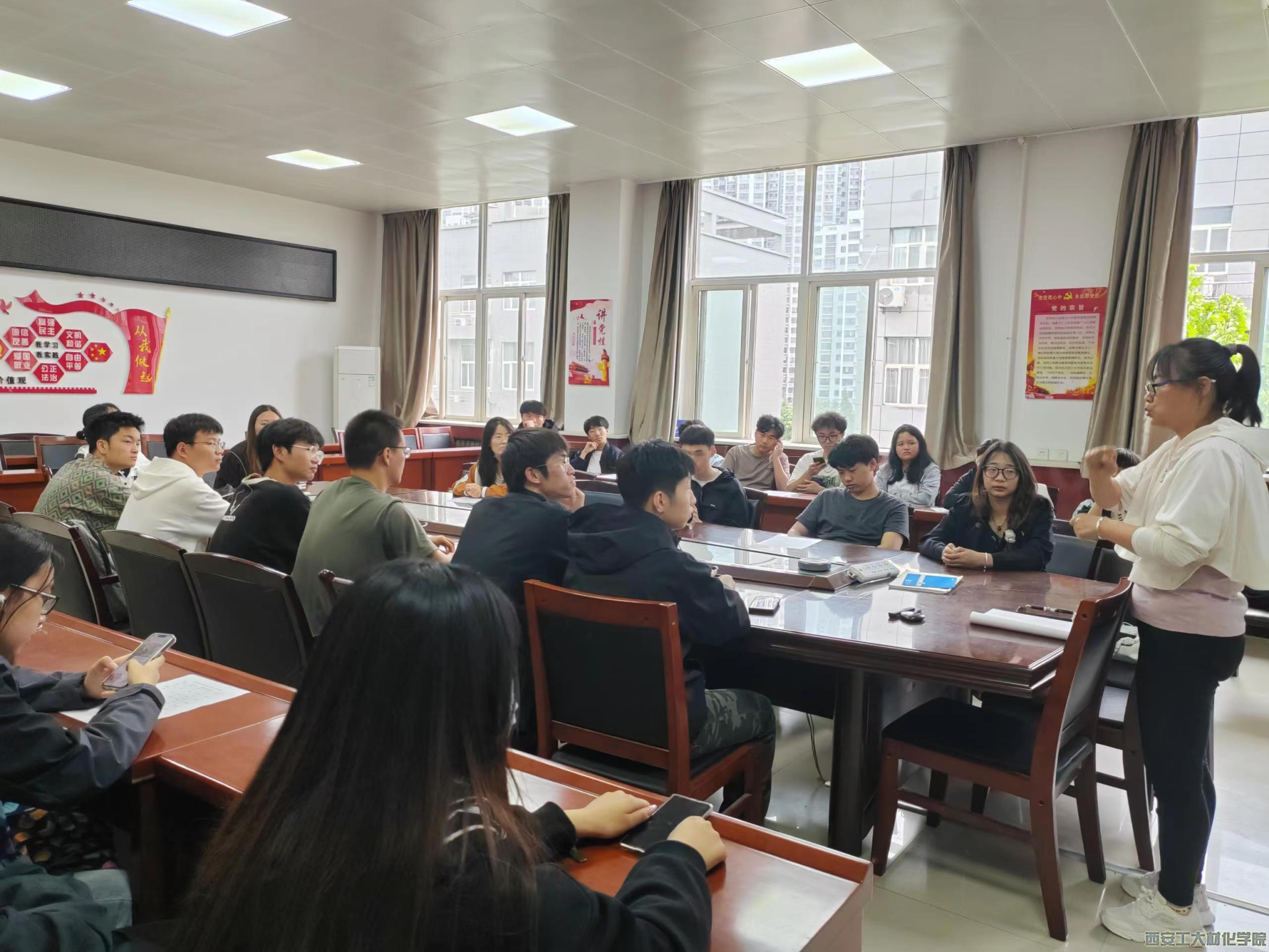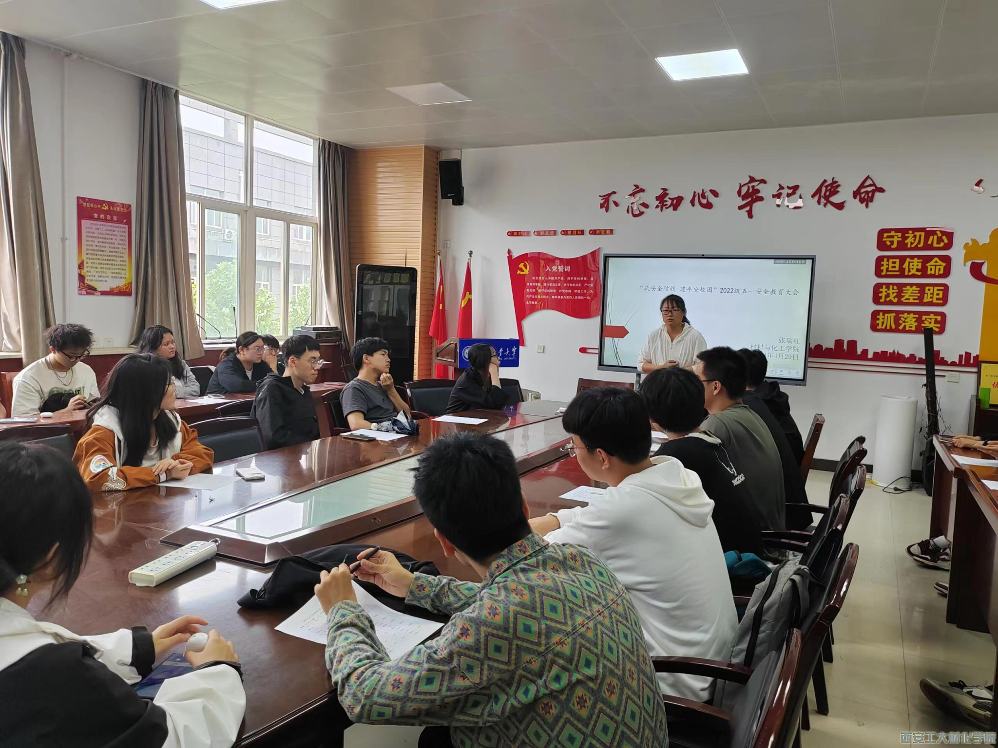 为提高学生认识安全教育的重要性,引导学生增强安全意识,2024年4月29日中午,材料与化工学院在工3-410召开 “筑安全防线 建平安校园”2022级学生五一安全教育大会。会议由辅导员张瑞红主持,2022级学生参加此次大会。