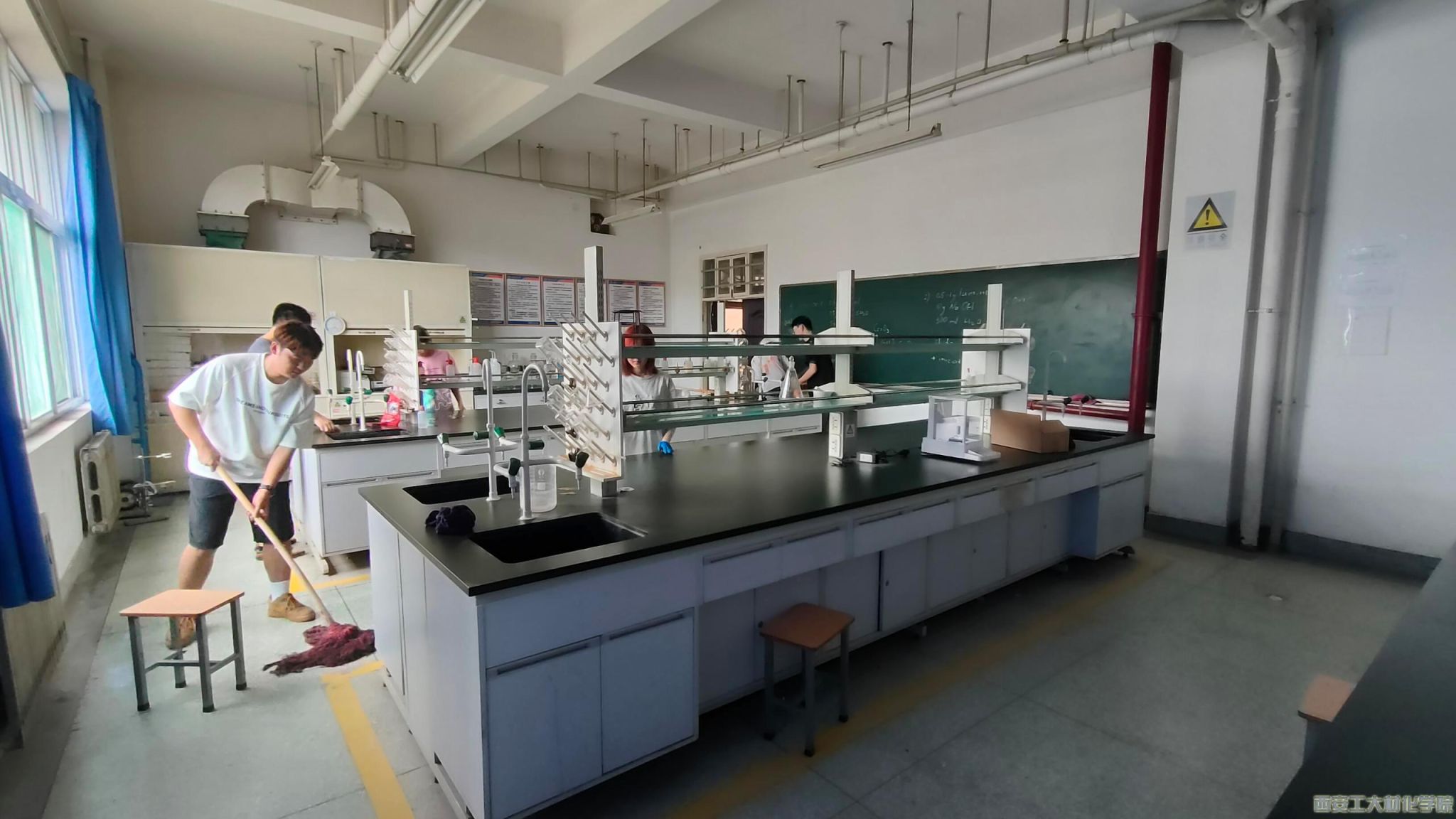 实验室作为科学研究和教学的重要场所,实验室的整洁与安全对于保障师生健康至关重要,2024 年 6月 13日下午,材化学院开展2022级实验室大清整活动,22030106团支部学生参加。