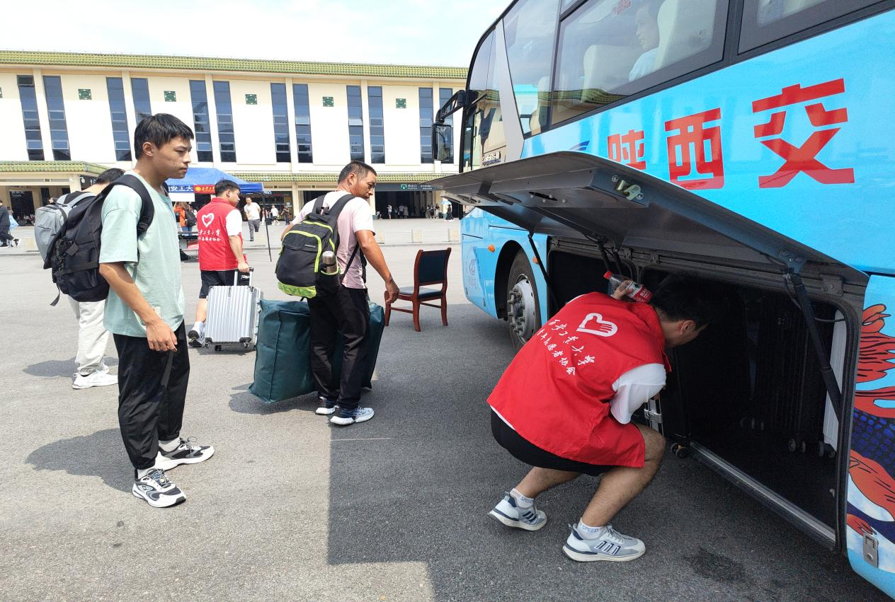 即使天气炎热,但迎新负责老师及志愿者始终坚持在迎新第一线,帮助前来报到的新生及家长搬运行李、引导乘车回校等。此次火车站接站工作,累计迎接新生500余人,发车护送学生及家长回校17趟。在迎新过程中,老师和志愿者们为新生介绍学校基本情况并回答新生提出的各种问题,用热情的微笑、耐心的解答和贴心的服务让来自祖国各地的莘莘学子感受到西安工业大学“家”一样的温暖。