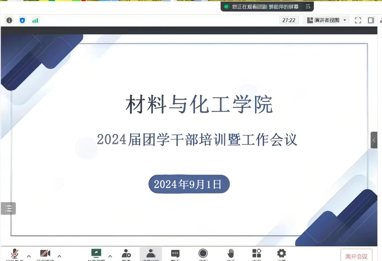 为了做好新学期工作安排部署,2024年9月1日,材料与化工学院团委线上召开新学期工作会议。会议由团委书记乔娜主持,全体团学干部参加本次会议。