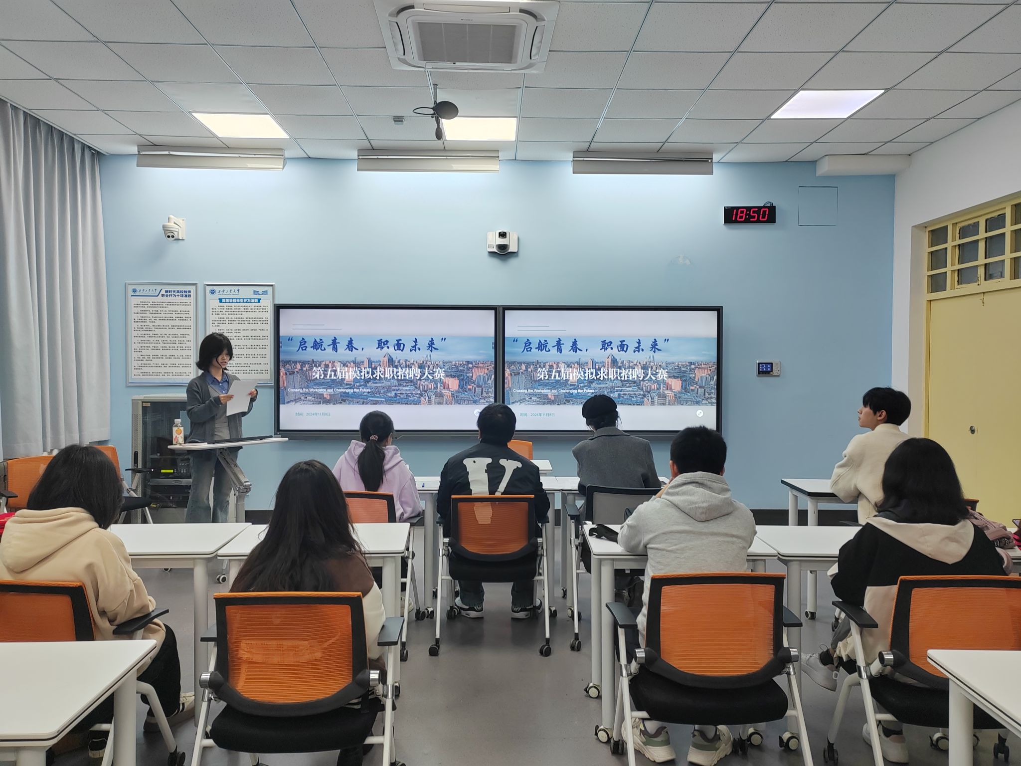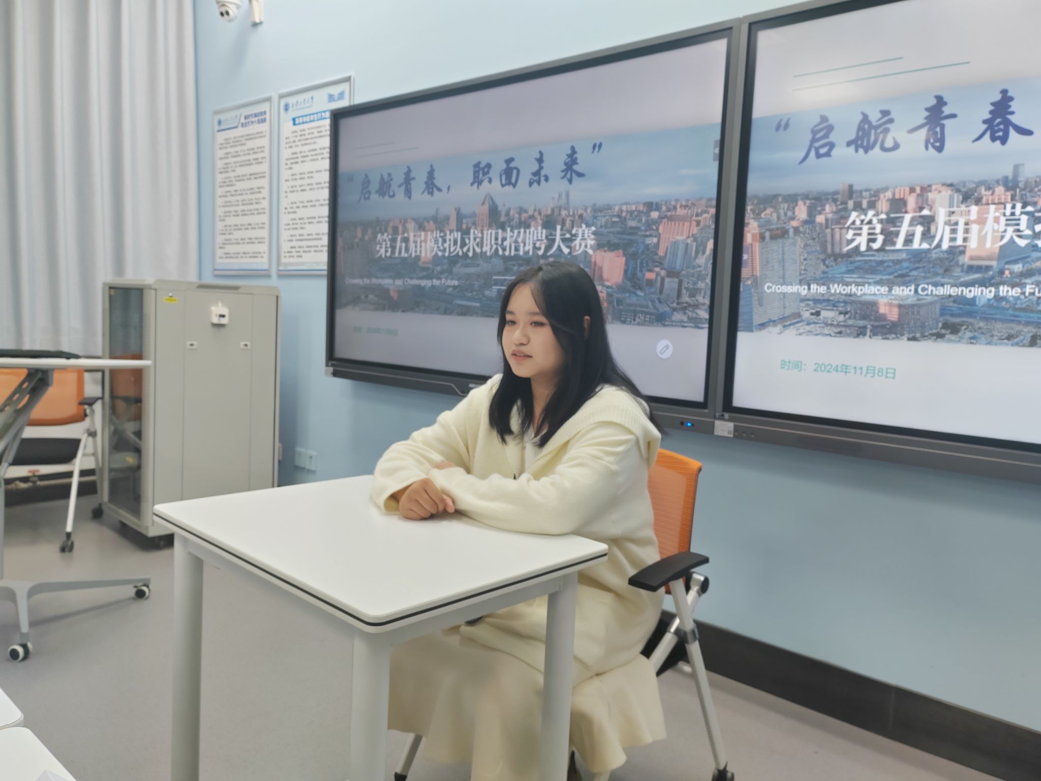 为促进大学生树立正确的求职观和就业观,科学规划自身职业目标,提高求职技能。11月8日,材料与化工学院社交与礼仪协会于教3-104举办“启航青春,职面未来”第五届模拟求职大赛。50余名学生参加。