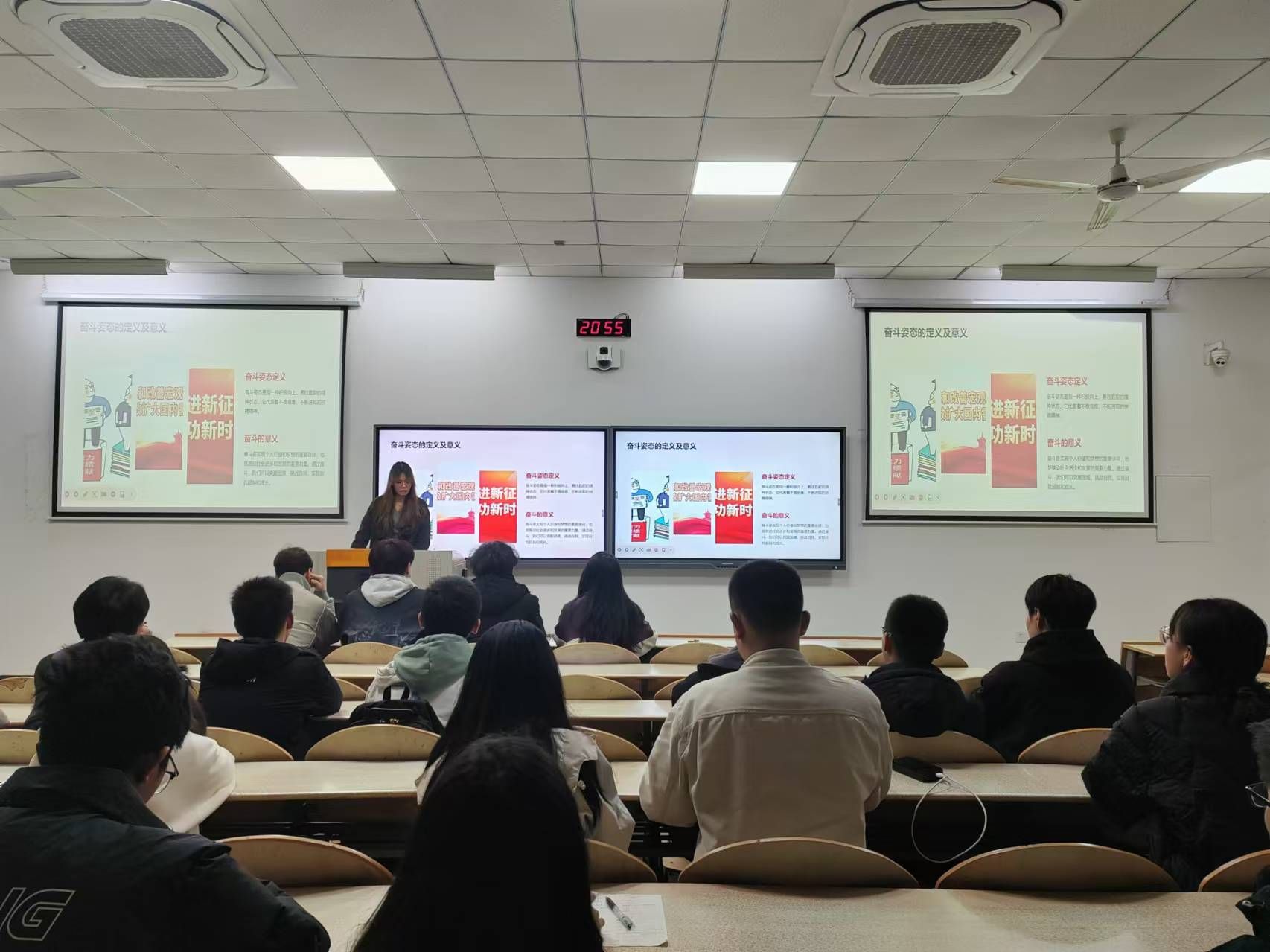 会议伊始,学生干部许淑敏从奋斗姿态的内涵与价值、深化改革创新的重要性与紧迫性、谱写陕西新篇章的战略布局与实践路径和陕西的机遇与挑战、以实际行动贡献青春力量五个方面进行展开论述,并举例说明当代大学生如何用自己的实际行动为祖国发展贡献青春力量,鼓励当代大学生积极行动。此次学习会议通过丰富的案例与详实的数据,深入分析了陕西在科技创新、产业升级、文化传承创新等领域面临的机遇与挑战,并详细解读了“争做西部示范”对于陕西发展的深远意义。