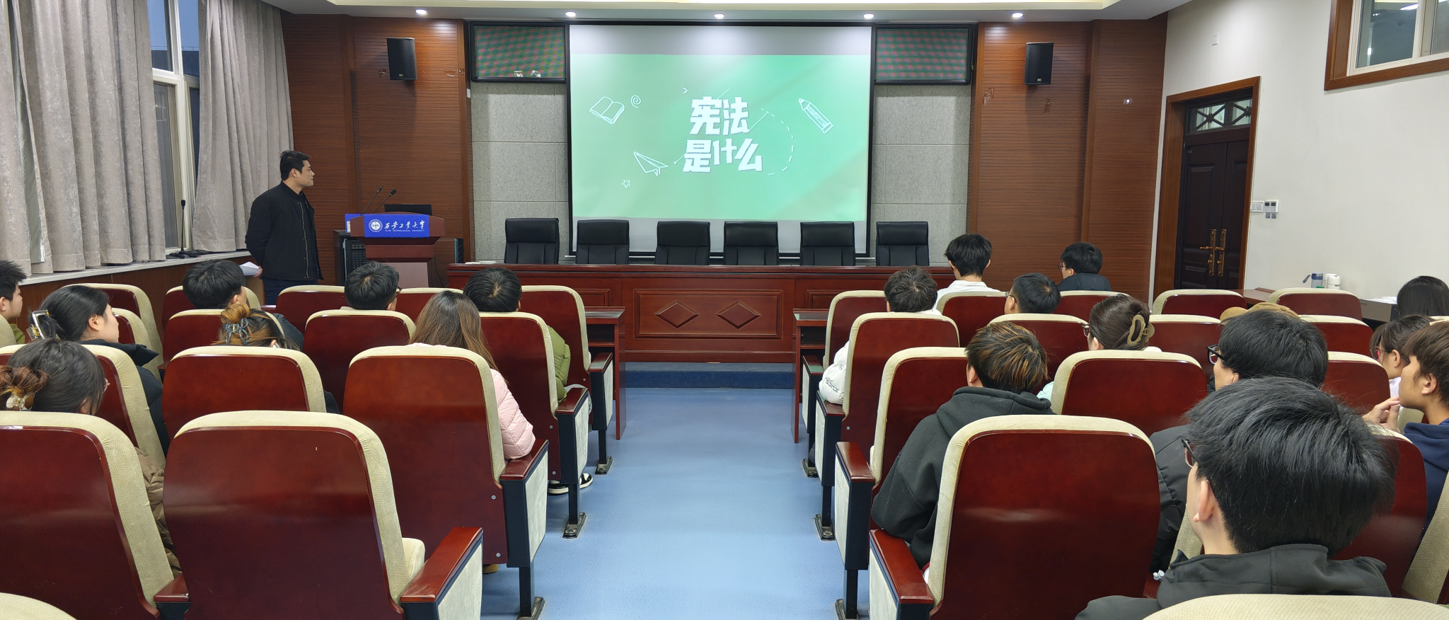为进一步加强法制教育宣传,引导学生深入了解宪法、尊崇宪法精神、增强法制观念,12月4日18:00,材料与化工学院2021级于工4-204开展了“学宪法,讲宪法”主题教育活动。此次活动由辅导员段强主持。