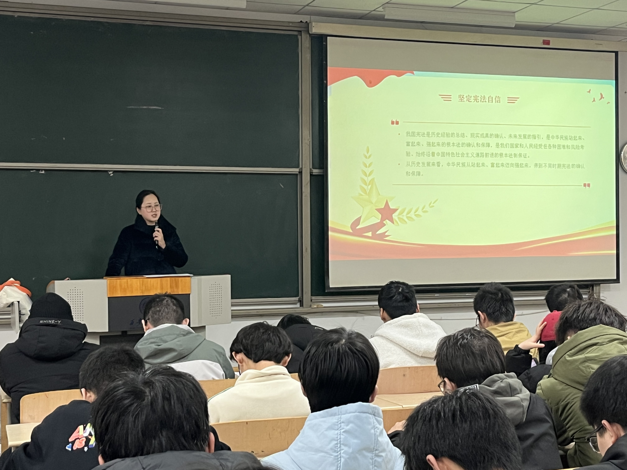 为深入学习贯彻党的二十大精神,全面落实习近平法治思想,材料与化工学院2023级于2024年12月19日召开了“弘扬宪法精神 坚定法治信仰”主题年级大会,学院2023级全体学生参加了此次大会。