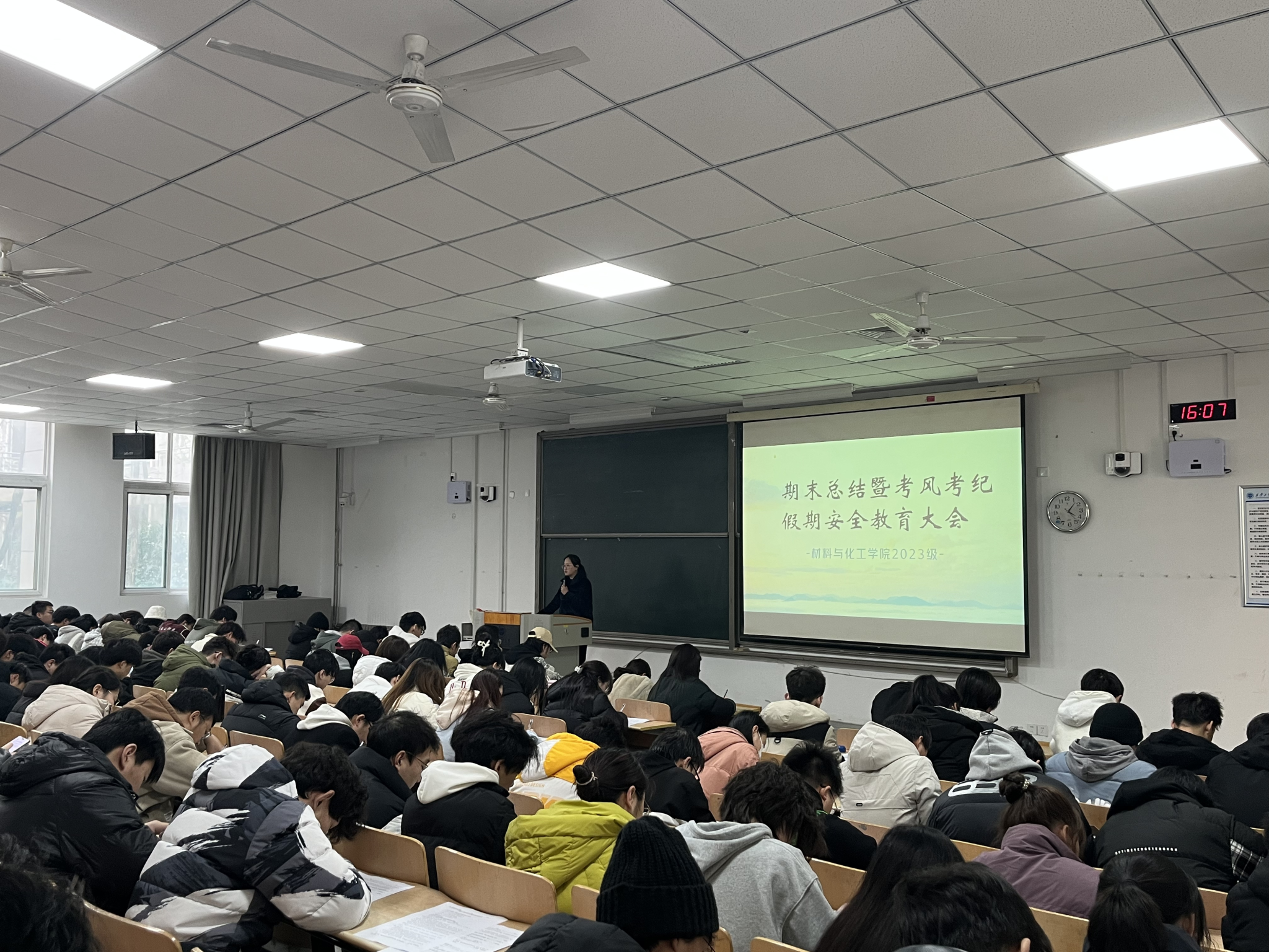 2024年12月12日,材料与化工学院2023级召开期末总结暨考风考纪、假期安全教育大会,针对重要问题进行安排部署,为学期末各项学生工作的顺利推进筑牢根基。全体2023级学生参加,2023级学生辅导员乔娜主持会议。