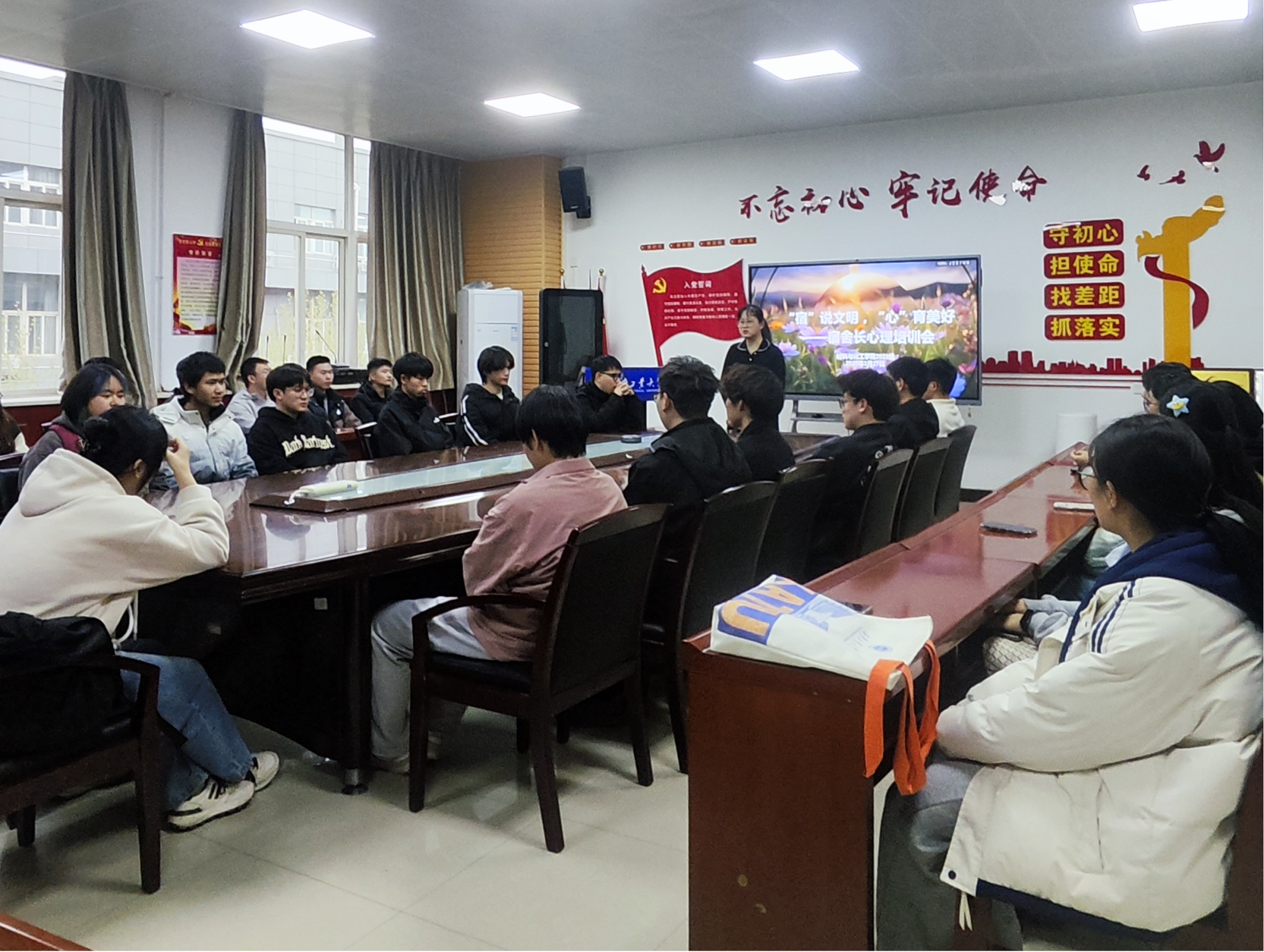 此外,本次培训还就文明宿舍的创建标准进行了详细解读,鼓励宿舍长带领舍友打造干净整洁、积极向上的宿舍环境,以良好的环境滋养健康的心灵。通过此次培训,宿舍长们对自身的职责有了更清晰的认识,提升了识别和应对心理问题的能力,为后续开展宿舍心理健康工作奠定了坚实基础。