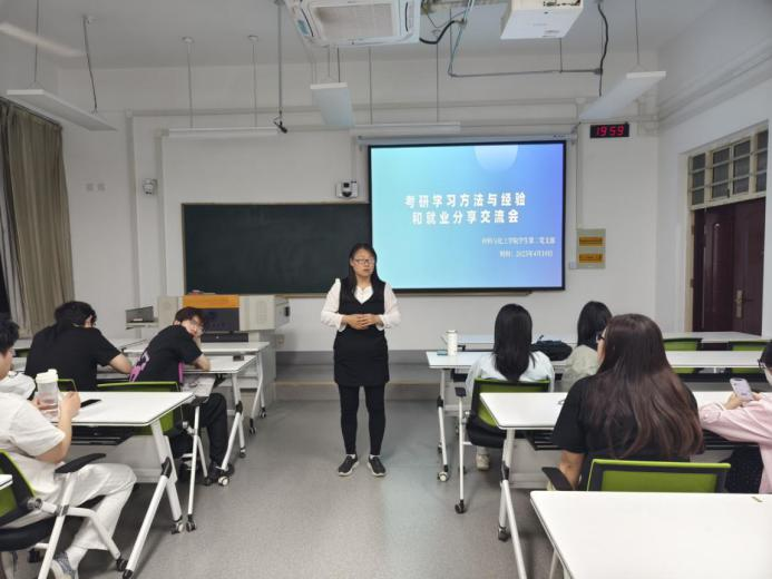 为帮助同学们更好的规划未来学习和发展的方向,掌握考研和就业的实战技巧,材料与化工学院学生第二党支部于2025年4月10日晚上七点在教3-303召开考研暨就业分享交流会。本次会议由支部书记张瑞红主持,支部全体党员参加。