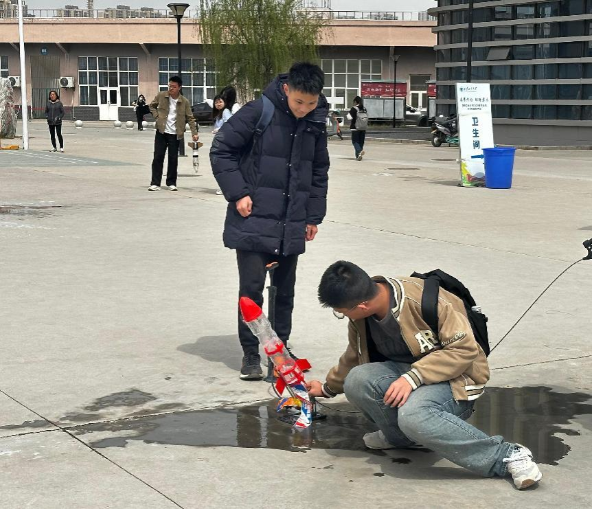 为弘扬科学创新精神,提升学生的动手能力与团队协作精神,同时庆祝我校七十周年华诞,材料与化工学院科学技术协会于2025年3月31日成功举办了以“化翼凌云庆华诞,水箭破空展宏图”为主题的第十二届化学水火箭大赛。此次活动吸引了众多学子积极参与,为校庆献上了一份独具科技魅力的贺礼。