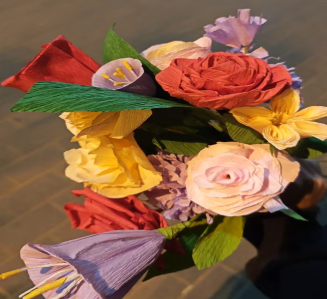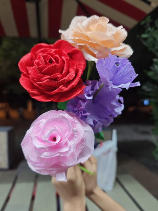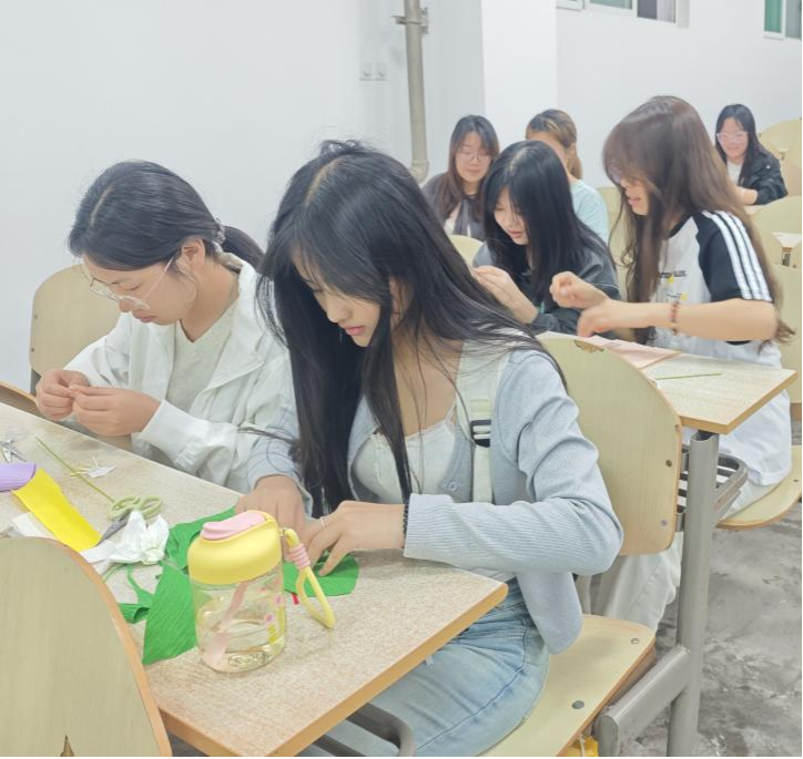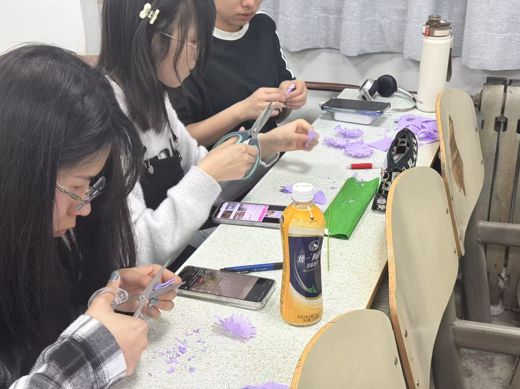 活动现场,工作人员提前准备了彩纸、剪刀、胶水、丝带等丰富材料,并精心布置了充满艺术氛围的制作区域。活动伊始,主讲人通过详细的步骤演示和生动的讲解,向大家介绍了纸花制作的技巧与方法。从花瓣的剪裁、卷曲,到花枝的组装、装饰,每一个环节都蕴含着独特的艺术魅力。在实践环节,同学们充分发挥想象力与创造力,全神贯注地投入到纸花制作中。大家或是相互交流、分享经验,或是独立思考、大胆创新,现场气氛热烈而融洽。经过近两个小时的精心制作,一朵朵形态各异、色彩斑斓的纸花在同学们的手中绽放。娇艳欲滴的玫瑰、清新淡雅的百合、活泼可爱的向日葵……每一朵纸花都寄托着对母校的深深祝福。