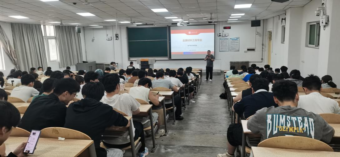 为确保金属材料工程专业生产实习工作有序开展,2025年5月30日上午,材化学院2022级在教1-101召开了金属材料工程专业生产实习动员大会。本次大会由夏峰老师主持,带队教师刘志学和马志军,2022级辅导员张瑞红及全体实习学生参加。