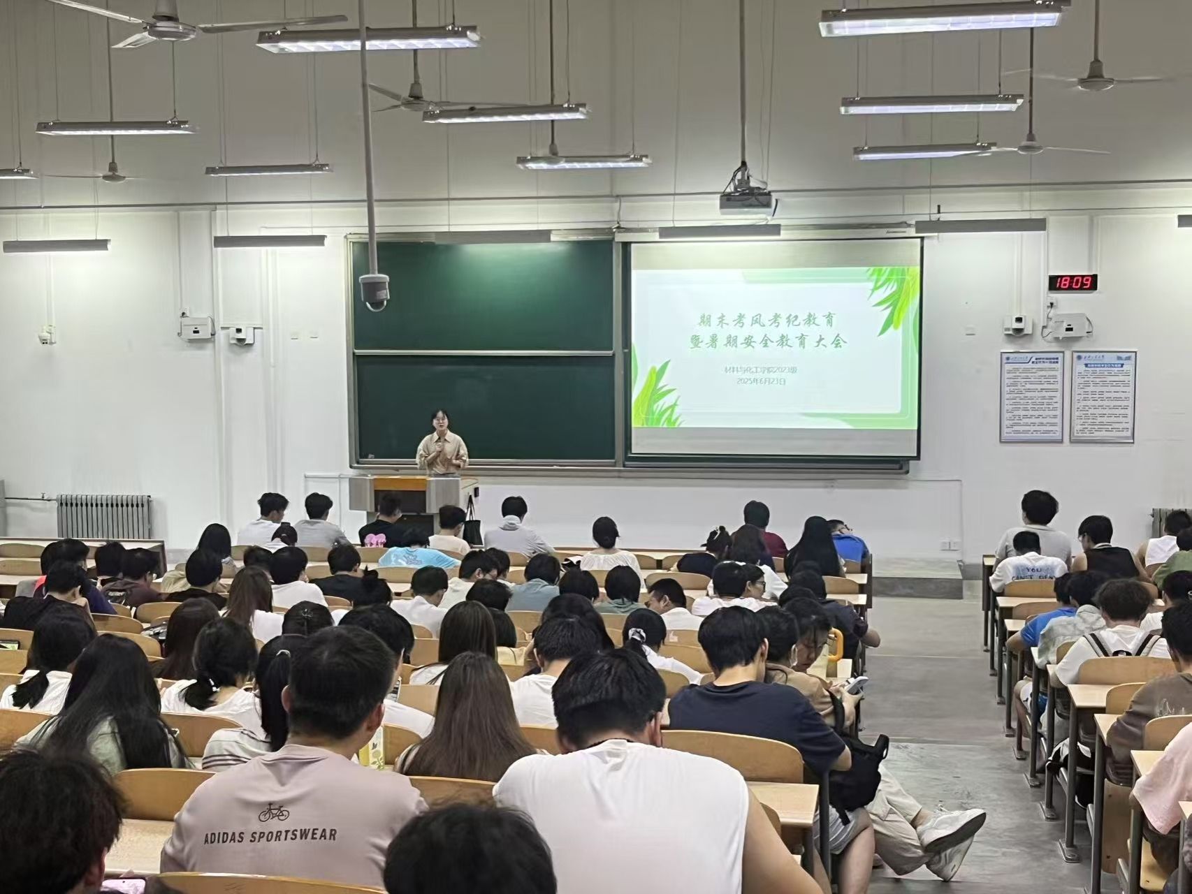 为严肃期末考试纪律,强化学生诚信意识,同时做好学生暑期安全教育管理工作,保障学生人身财产安全,6月23日,材料与化工学院于教1-205召开期末考风考纪教育暨暑期安全教育大会。辅导员乔娜以及全体2023级学生共同参与此次大会。