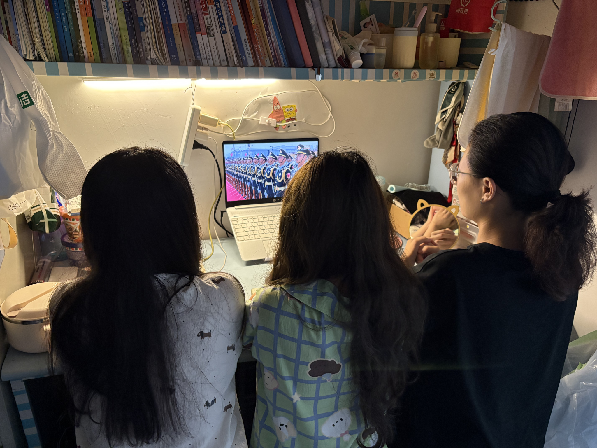 阅兵仪式上,整齐划一的方阵、先进精良的装备、威武雄壮的空中梯队依次通过天安门广场,展示了我国强大的国防力量和军队现代化建设的巨大成就。师生们看到受阅部队官兵昂首挺胸、步伐铿锵,展现出新时代革命军人的精神风貌,心中满是骄傲与自豪。当看到一辆辆新型武器装备隆隆驶过,它们先进的性能和强大的火力,让师生们真切感受到国家在国防科技领域的飞速发展。空中梯队呼啸而过,划出壮美的航迹,更是引发了现场一阵又一阵的欢呼与惊叹。不少师生激动地表示,要以革命先辈为榜样,将爱国之情转化为学习和工作的动力,在各自的岗位上努力奋斗,为国家的发展贡献自己的力量。
