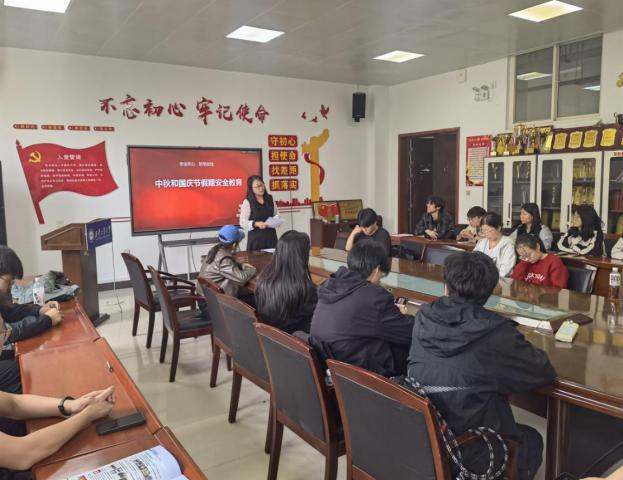 在中秋与国庆双节假期即将到来之际,为确保同学们能够度过一个平安、充实的假期,材料与化工学院于2025年9月29日在工3-410召开了2022级中秋国庆假期安全教育会。会议由辅导员张瑞红主持,2022级学生参加。