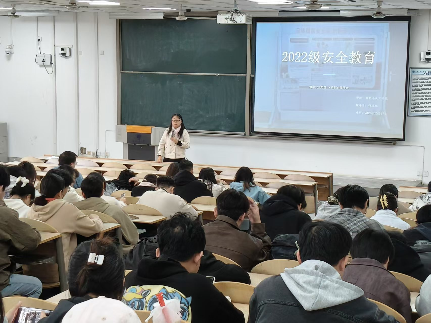 为促进学校和谐稳定发展,维护校园正常秩序,增强学生的安全防范意识和自我保护能力。材料与化工学院于10月17日在教1-104举办了“筑牢安全防线,勇担时代使命”安全教育大会。本次会议由辅导员张瑞红主持,2022级全体同学参加。