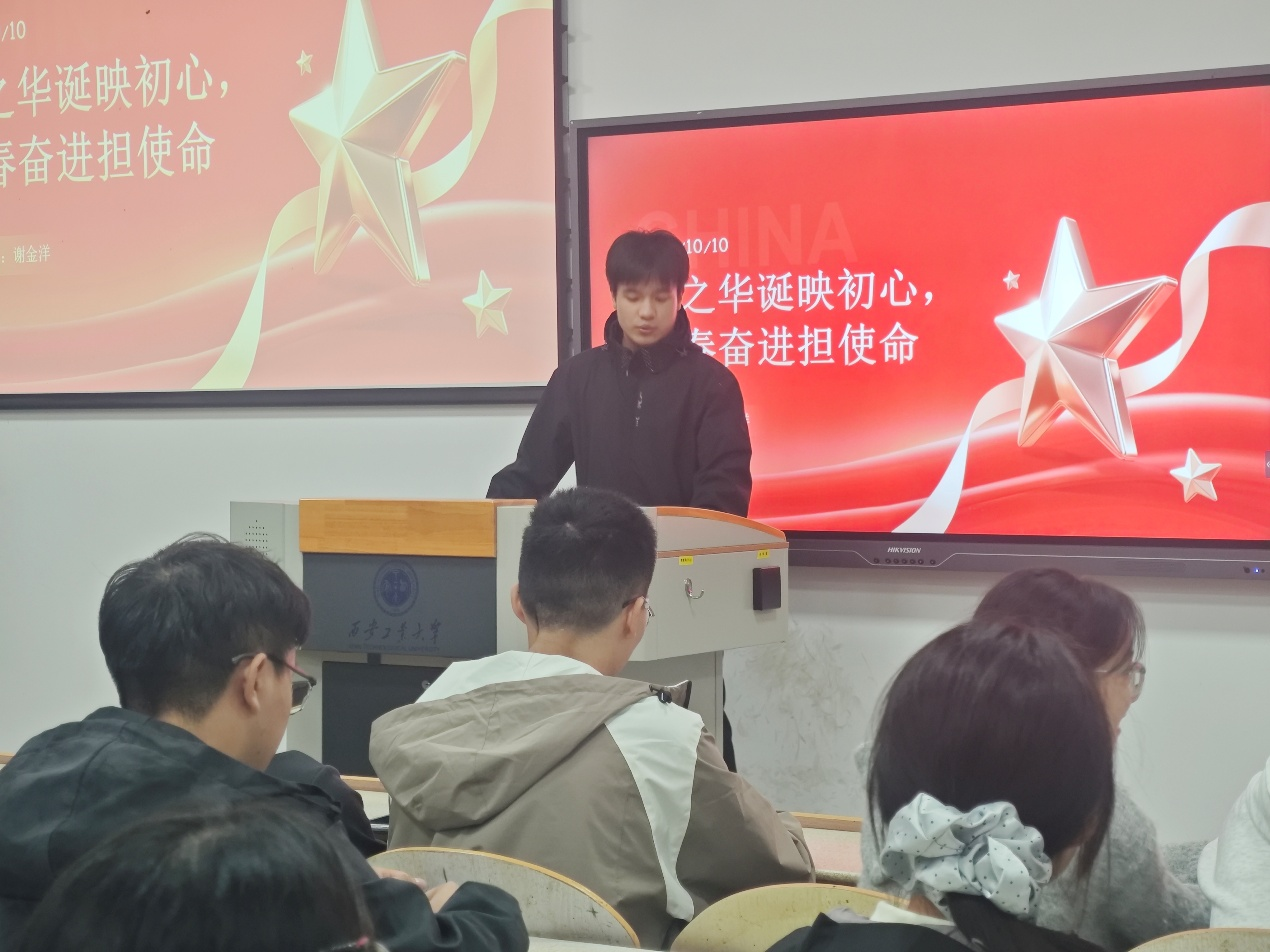 为深入学习爱国精神的时代内涵,激励青年学子将个人理想融入国家发展,材料与化工学院团委于2025年10月10日在教2-103开展“国之华诞映初心,青春奋进担使命”理论学习会。会议由学生干部谢金洋主讲,学院全体团委成员齐聚一堂,在理论学习与思想碰撞中筑牢爱国信念。