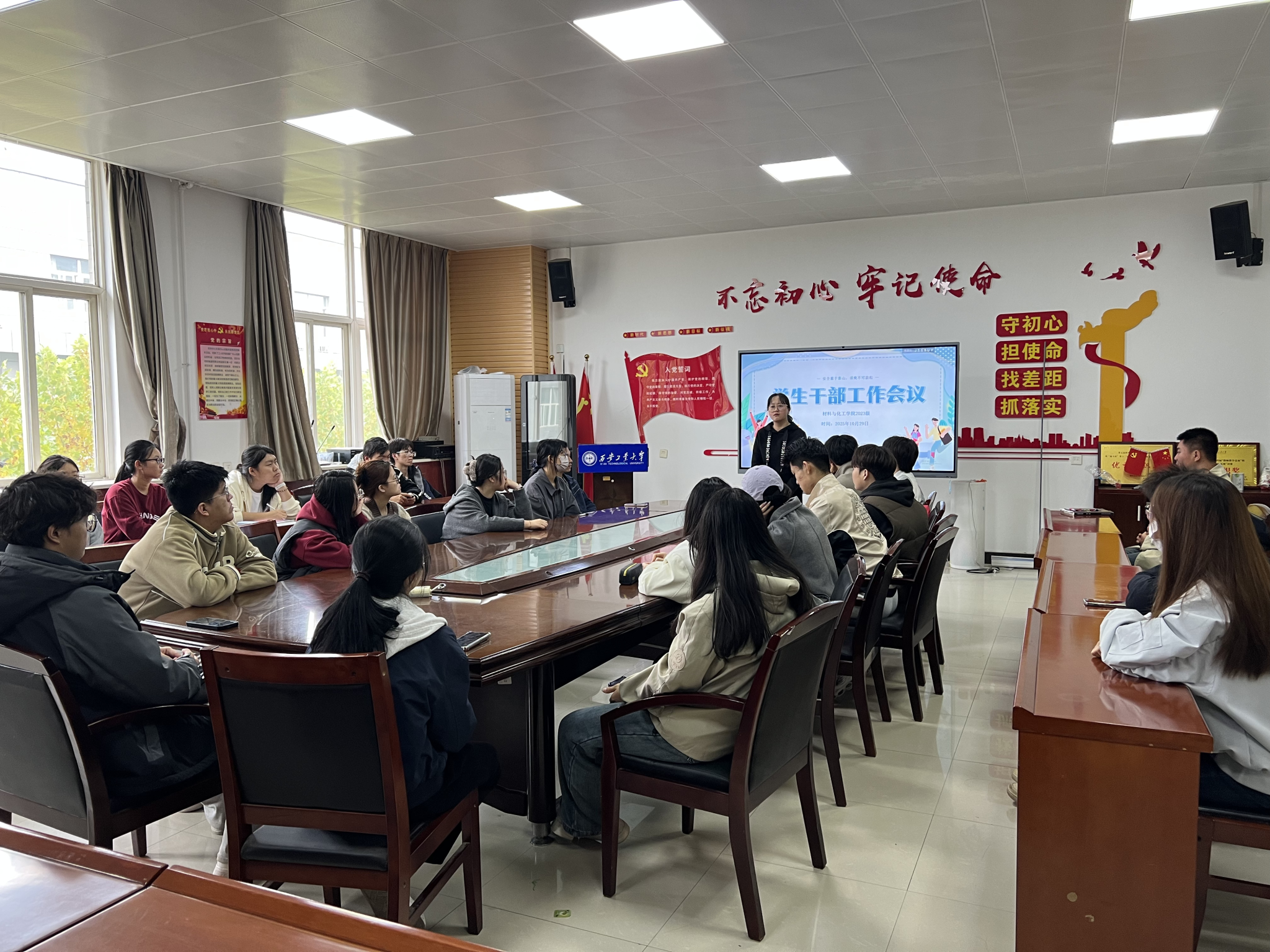 为进一步强化学生干部责任意识,织密校园安全防护网,10月29日,材料与化工学院2023级在工3-410会议室召开学生干部工作会议。2023级辅导员乔娜及全体学生干部参会,会议聚焦“安全教育”核心,明确工作重点,部署后续工作。