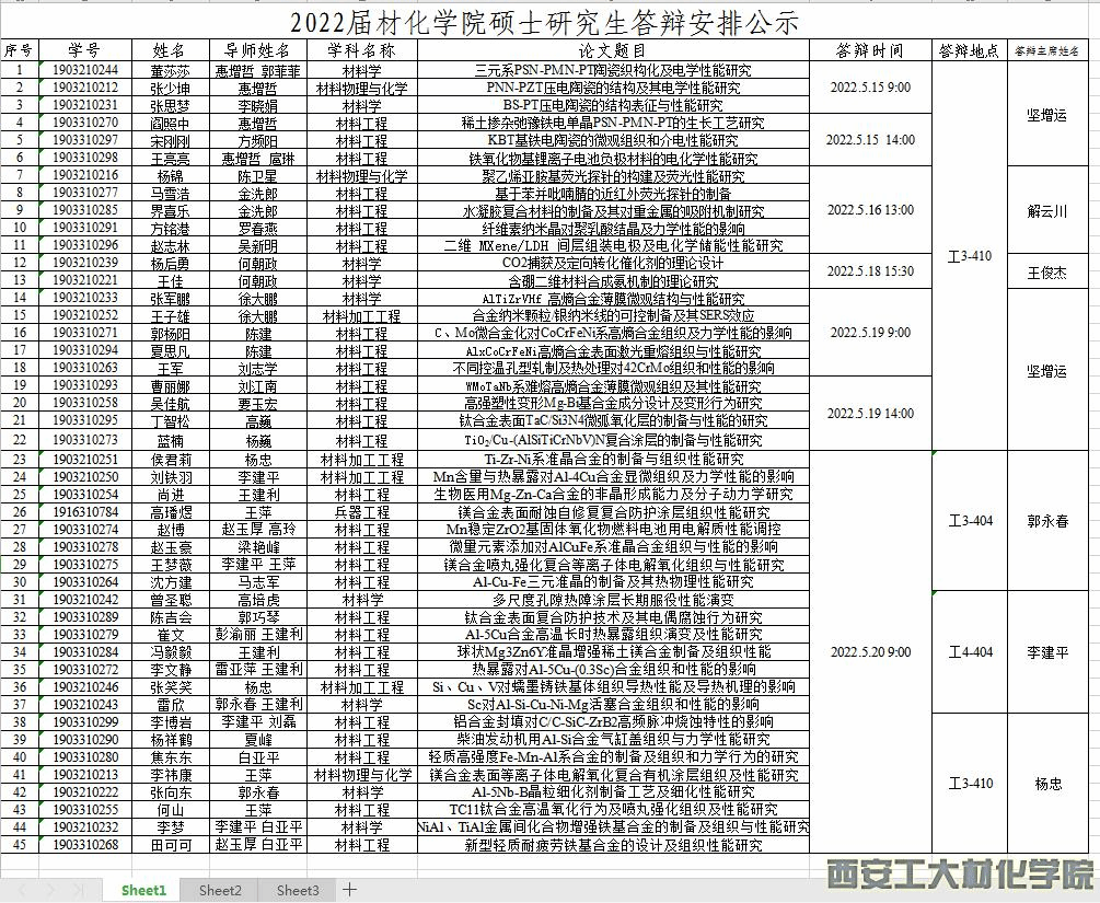 2022届材化学院硕士研究生答辩安排公示
