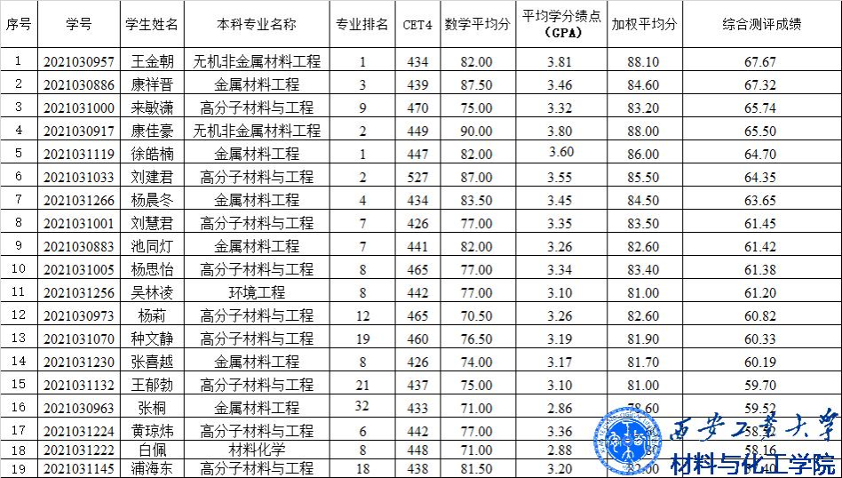 学院依据《西安工业大学推荐(接收)优秀应届本科毕业生免试攻读研究生实施办法(修订)》《关于做好西安工业大学2025年推荐优秀应届本科毕业生免试攻读研究生工作的通知》及学院推免工作实施细则,经对符合基本条件学生本人申请、加分项认定及答辩、成绩计算及排名各环节的严格把关,报学院研究生招生工作领导小组审定后,产生学院推免生拟推荐人员名单,现予以公布,如有问题,请于2024年9月13日20时前以书面形式实名向学院联系人反馈。