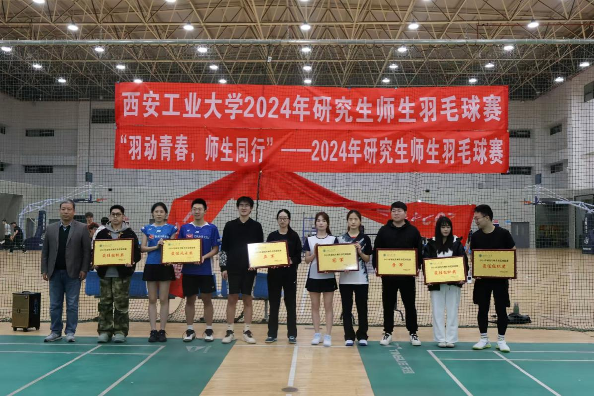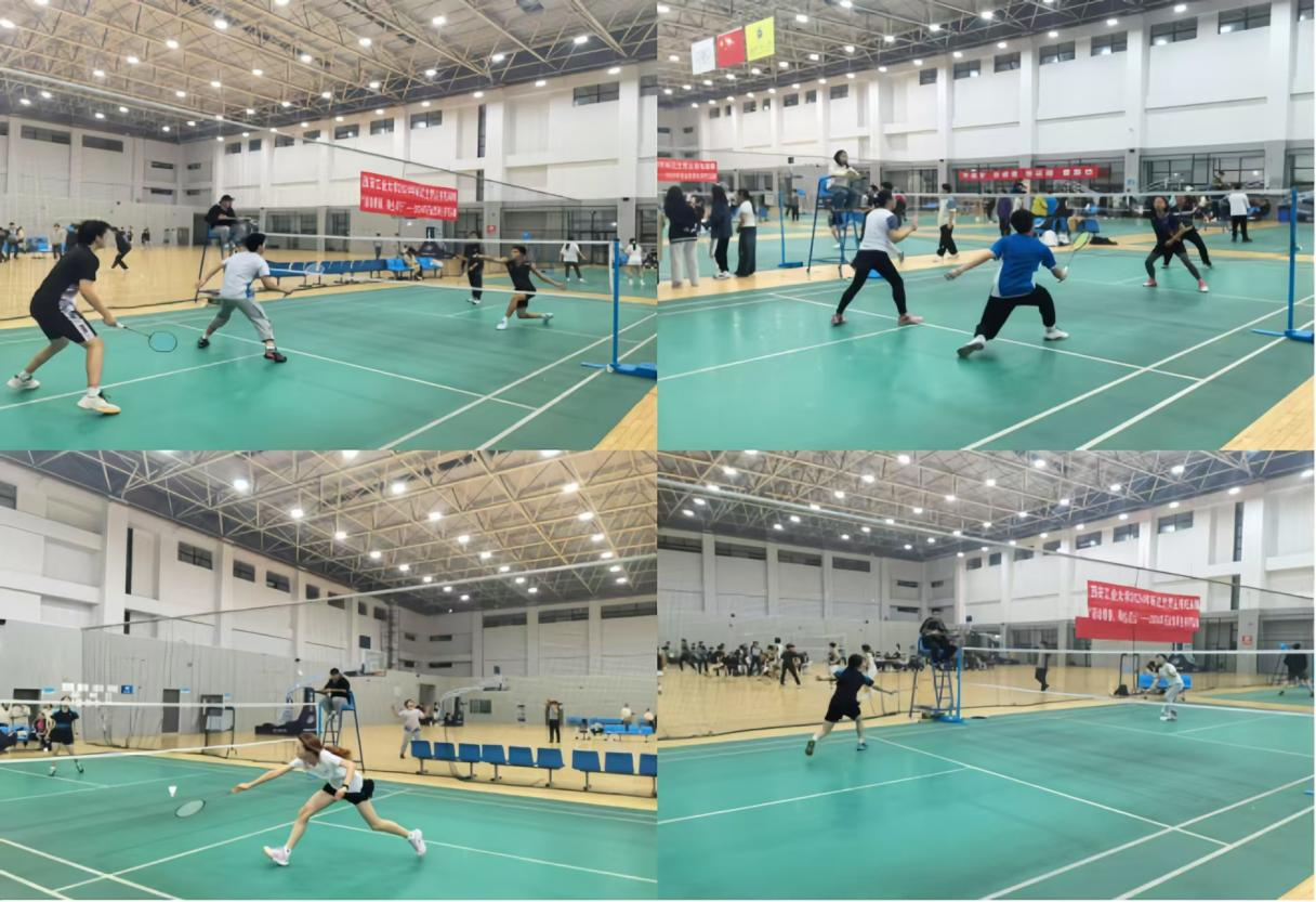 本次比赛形式为师生混合团体赛,涵盖混双、女单、男双、女双、男单五个项目。通过淘汰赛和晋级赛决出冠、亚、季军,并设最佳风采奖和最佳组织单位奖。参赛师生以饱满的热情和顽强的斗志,展现了西安工业大学研究生的活力与风采。在比赛过程中,选手们全力以赴,默契配合。高远球、扣杀、吊球等精彩球技不断呈现,现场气氛热烈,欢呼声、掌声此起彼伏。师生们在比赛中不仅切磋了球技,还增进了彼此的了解与友谊,提升了研究生的身体素质和团队协作能力。