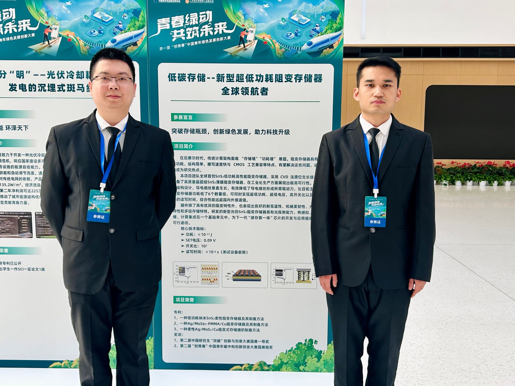 由我校材料与化工学院研究生董芃凡、高书刊、李靖筠、耿朋辉和电子信息学院研究生陈卓、王星晨、陈瑞祥、高晶晶组成的交叉学科创新团队(指导教师:坚佳莹)完成的《低碳存储--新型超低功耗阻变存储器全球领航者》项目进入学术组全国六强,获得总决赛银奖(获奖率0.4%)。