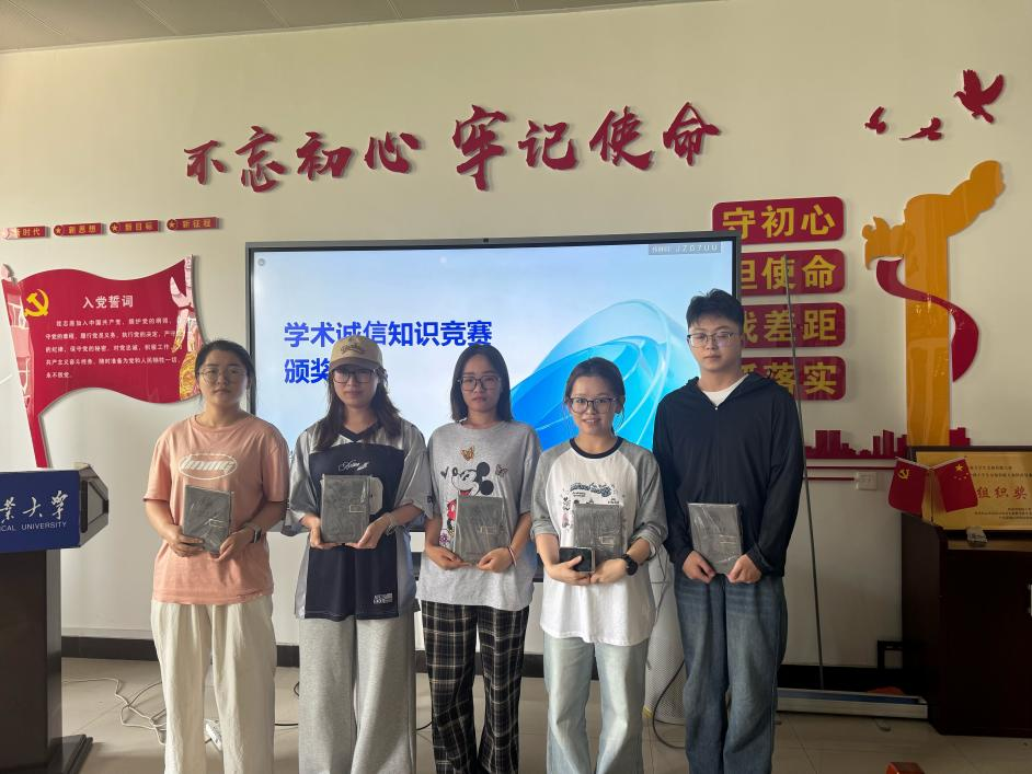 本次活动以线上答题形式开展,吸引了广大学子积极参与,通过以赛促学的方式,深化了同学们对学术规范的理解与重视。竞赛内容紧扣学术规范核心,题目涵盖学术诚信、论文撰写规范、论文投稿等多方面,全面考察研究生对学术道德准则的掌握情况。经过激烈角逐,共有5名同学凭借扎实的知识储备和出色的表现脱颖而出,他们分别是刘雅瑞、赵佳慧、李文慧、武进雷、李艺。赛后,同学们纷纷表示,此次活动形式新颖、内容实用,既检验了自身对学术规范的认知,又深刻认识到学术诚信是科研工作的生命线。