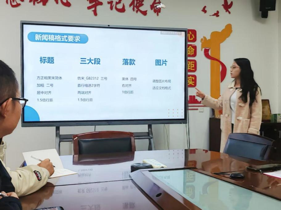 首先,任嵘芝立足研会工作实际,围绕“技能赋能工作实效”的核心思路,强调了专业技能在精准传递学院动态、高效开展学生工作、塑造集体良好形象中的关键作用,让新一届研会成员深刻认识到,过硬的业务技能是履行岗位职责、提升工作质量的核心支撑。随后,她结合宣传类工作的实操需求,从核心信息提炼、逻辑框架搭建、规范表达技巧等方面展开细致讲解,明确了各类工作文稿的格式规范、语言要求,帮助研会学生培养客观严谨的行文逻辑与聚焦核心的表达能力。培训过程中,任嵘芝结合过往工作案例,将抽象的技能要点转化为具象的实操方法,帮助大家快速理解吸收。