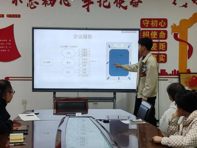 会议伊始,研究生骨干任嵘芝以“理论结合实践,让镜头更有温度”为导向,从宣传工作高频使用的摄影构图法切入,围绕中心式构图、低角度机位、引导线构图三大核心拍摄方法展开系统讲解。她结合学院往期活动纪实、会议记录等真实拍摄案例,生动剖析不同构图法在突出主体、营造氛围、传递信息等方面的应用场景与操作要点,帮助骨干快速掌握理论知识向实践转化的技巧。随后,第四届研究生会成员宋一鸣立足日常宣传工作经验,针对骨干在实际拍摄中常面临的光线把控难题、动态场景抓拍时机等痛点,进行精准的经验分享与技巧补充,通过学习优秀拍摄作品,直观传授调整思路,进一步强化骨干的实操认知。活动过程中,参会成员主动结合工作疑问交流探讨,现场互动频繁、学习氛围浓厚,充分展现了研究生骨干主动提升专业能力、服务学院发展的积极态度。